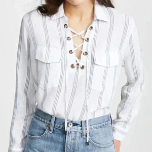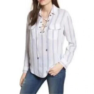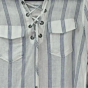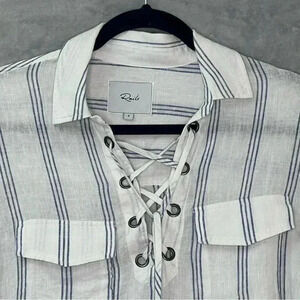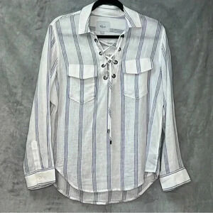 Rails Matea Flamenco Stripe Linen Blend Pockets Shirt Blouse Sz M