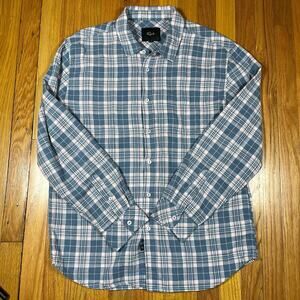 Rails Mens Wyatt Shirt Button Up Long Sleeve Melon Pink Blue Plaid Cotton Large