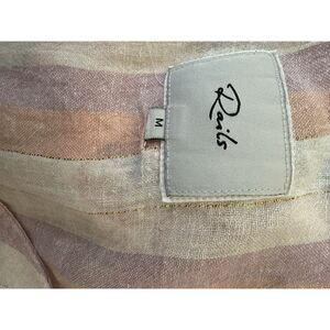 The product is a Rails Mira Apricot Stripe Peplum Tank Top in size medium. This sleeveless tank top features a V-neckline and a stylish peplum silhouette, perfect for a trendy and comfortable outfit. The top is in a beautiful pink striped color, adding a pop of color to any wardrobe. Made by the brand Rails, known for their quality and stylish clothing, this top is a versatile piece that can be dressed up or down for any occasion.