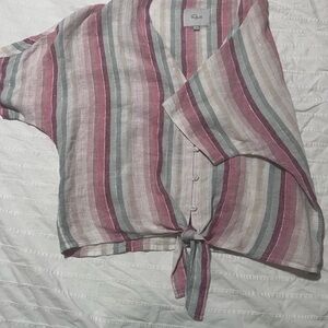 Rails Multicolor Striped Tie-Front Top Metallic Size Small
