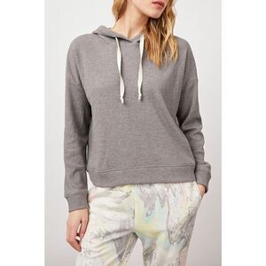 Super soft, lounge waffle, long sleeve, heather grey hooded sweatshirt featuring relaxed fit, dropped shoulder, and natural drawcord at hood. This super soft, lounge worthy pullover style is perfect for relaxing at home or going about your day in the most comfortable fashion.