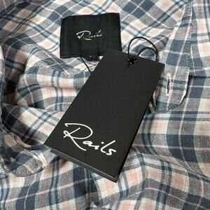 Rails NWT Connor Plaid Linen Blend Button Up LS Stone Pink White Size Large