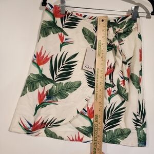 Rails NWT Green Orla Wrap Skirt Linen Blend Birds of Paradise Flower Print