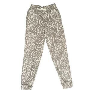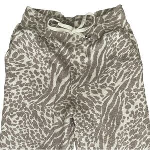 Very good preowned condition Rails jogger pants are cream with tan animal spots all over. Drawstring and elasticized waist and two side pockets. See last photo for measurements.
