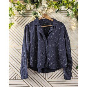Rails Navy Galaxy Star Print Button Front Cropped Boxy Top Blouse Womens Size M
