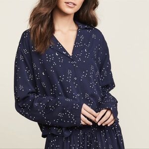 Rails Navy Galaxy Star Moon Print Button Front PJ Style Soft Top, Long Sleeves, Cropped Boxy Relaxed Fit!
