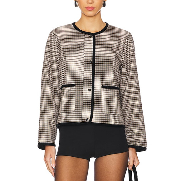 Rails 'Nota' Tan Polyester Jacket Size M: cut from a luxe twill with a boxy, cropped fit, patch pockets, and contrast binding.