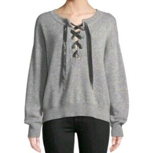 Rails Olivia Ash Gray Velvet Lace Up Wool/Cashmere Sweater Size S