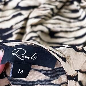 Rails Ora Canyon Abstract Print Long Sleeve Tie Waist Mini Dress Tan size M NEW