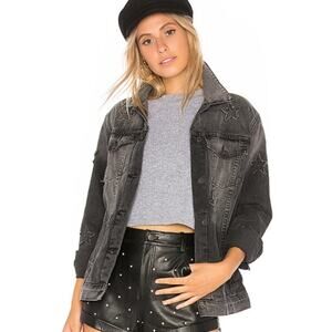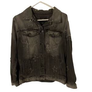 Rails Oversized Star Patch Faded Denim Jacket Black Womens Size Small