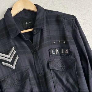 Rails Pepper Military Plaid Button Shirt S. TTS. Color: ONYX & CHARCOAL.