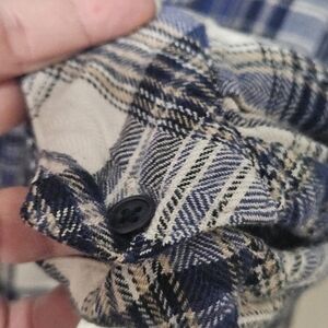 Stylish plaid shirt featuring a classic blue and white design. Perfect for casual outings or a relaxed office look used no holes or stains however has some was wear measurements approximately flat lay pit to pit 18 1/2 length 28 sleeve 24