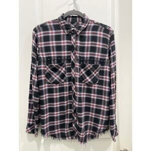 Rails Plaid Long Sleeve Studded Blouse Button Down Shirt Sz XS