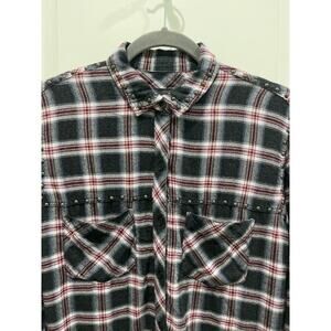 Rails Black, White & Red Plaid Long Sleeve Studded Blouse Button Down Shirt Sz XS