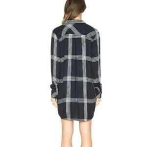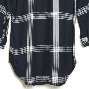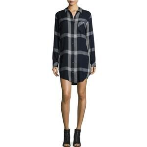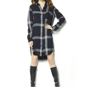 Rails Plaid Navy Blue White High Low Long Sleeve Button Down Shirtdress Size S