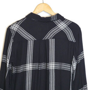 Rails Plaid Navy Blue & White High Low Long Sleeve Button Down Shirtdress Size S
