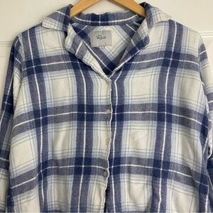 Rails Plaid Pajama Set Capri Flannel Pacific Sky White Loungewear Sleepwear Sz M