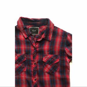 Rails Plaid Red Navy Button Down Pocket Shirt Size Small