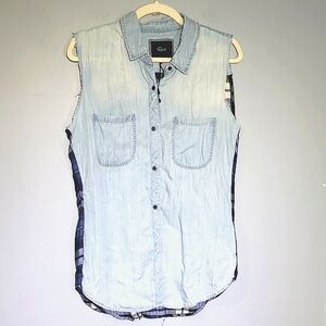 Rails Plaid Tencel Denim Sleeveless Front Pocket Top