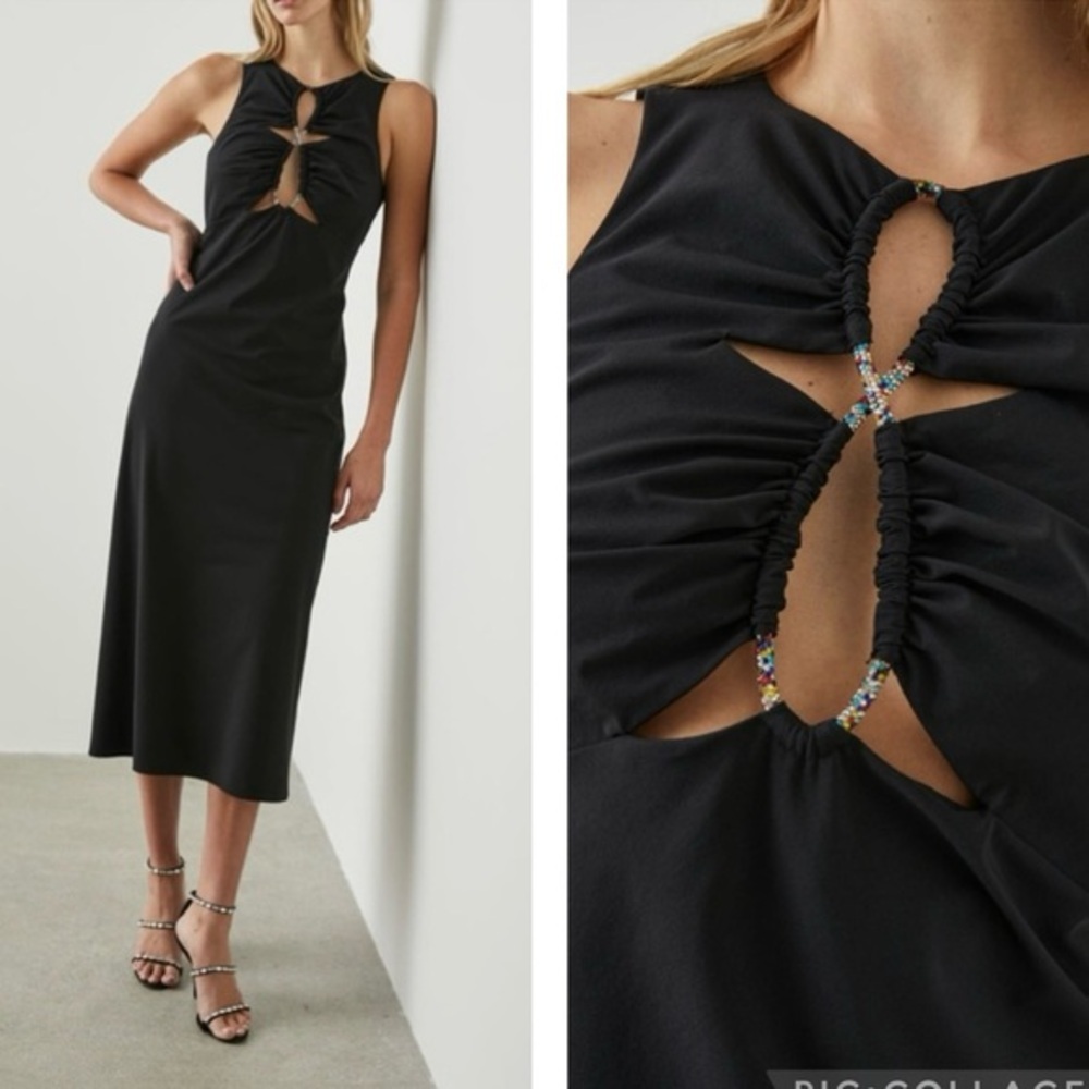 Rails Black Nylon Sleeveless Jewel Twist Cutout Long Samba Dress