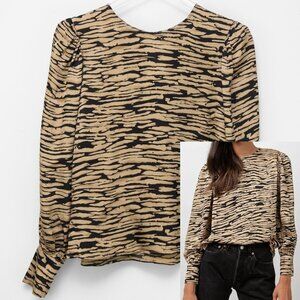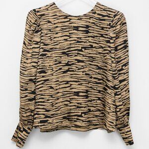 Rails Razz Top Canyon Tiger Stripe Blouse Hammered Satin Camel Black Size Small