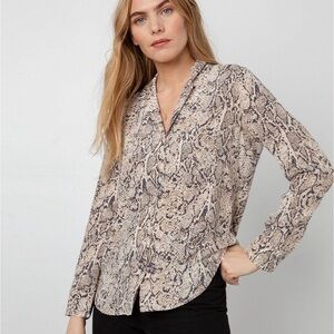 Rails Rebel Ivory Snakeskin Silk Classic Animal Print Button Down Blouse Large