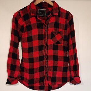 Rails Red Buffalo Plaid Check Long Sleeve Flannel Shirt Button Front Top sz Sm