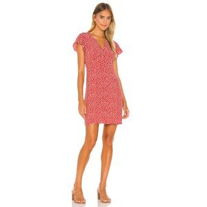 Details: Purchased from Revolve for $188. Short flutter sleeve, V-neck, A-line eye-catching red dress with fabric covered buttons, side zipper, and mini white floral print. Lined. Front seams encourage the fabric to lay flat and hug the body for a flattering shape.