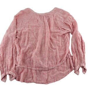 Rails Red & White Striped V-Neck Button-Down Blouse Medium Linen/Rayon