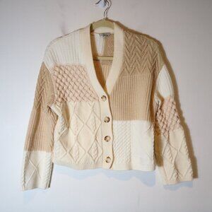 Rails Reese Cardigan Womens Xs Patchwork Cable knit Button Front V Neck Sweater