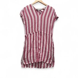 Rails Ren Drawstring Waist Mini Dress Seville Pink White Strip Sz Small Linen