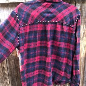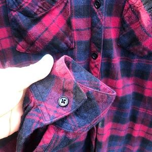 Rails Rex blue red black flannel EUC. Pit to pit 20.5” flat and 26” long and 6” flat bicep. Frayed hem. Super cute rocker or grunge look!
