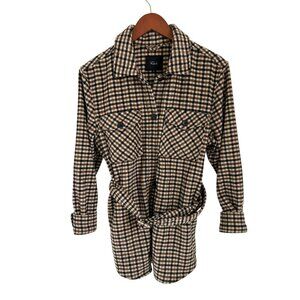 Rails Rhodes Check Belted Shirt Jacket In Ochre Sand Mocha