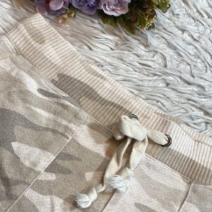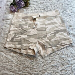 Rails robin oatmeal cream and tan colored camo patterned ribbed trim lounge shorts. These shorts are in great used condition