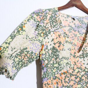 Rails Roma Gardenia Mini Dress Floral Romantic Puff Sleeves V-Neck Size Small