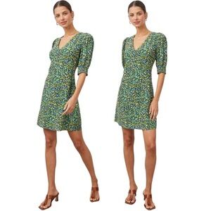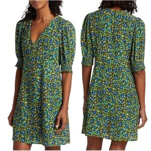 Rails Roma V Neck Short Puff Sleeve Abstract Floral Garden Print Mini Dress NEW