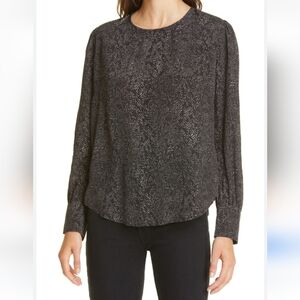 Rails Roslyn Slate Python Blouse Top Luxe Satin Crepe Longsleeve Keyhole Gray XS