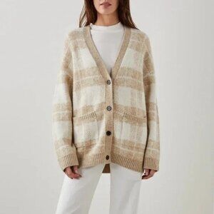 Rails Runi Oversized Cardigan Ivory Sand Plaid Size XXS 2XS NWT Wool Blend Cardi