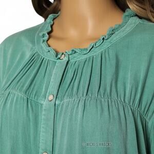 Rails Ruthie Ruffle Cap Sleeve Snap Front Basil Green Blouse Top Size XL