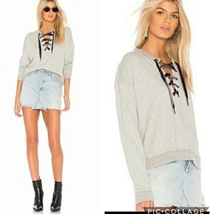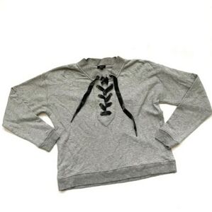 Rails Ryan Gray Velvet Tie Sweatshirt Pullover Size S