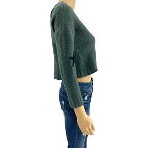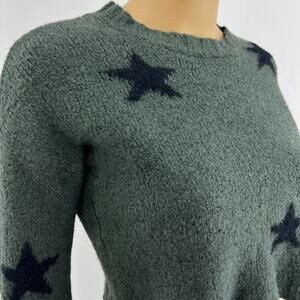 Rails SMALL Perci Olive Black Stars Sweater 100% Merino Wool Crop 3/4 Sleeve Top