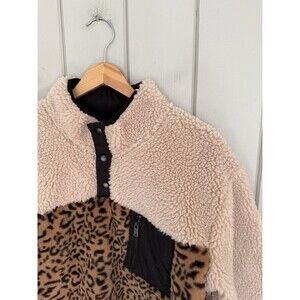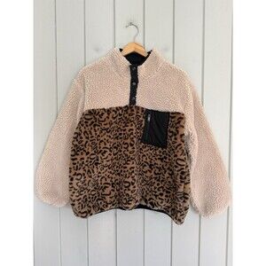 Rails Saga Jacket L Large Faux Fur Cream Leopard Print Teddy Popover Mock Neck