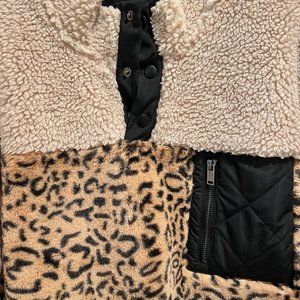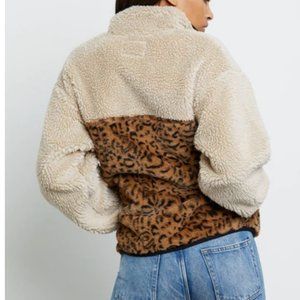 Rails Saga Leopard Print Teddy Quarter-Zip Pullover Jacket