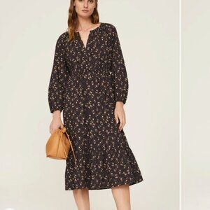 Sal dress in romantic floral pattern from Rails. Midi length. Long sleeves. Elastic cinching at waist. Perfect dress for fall!