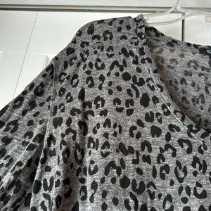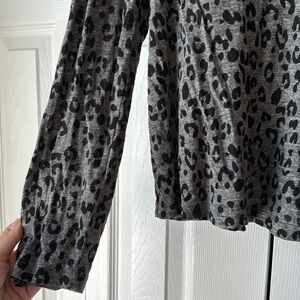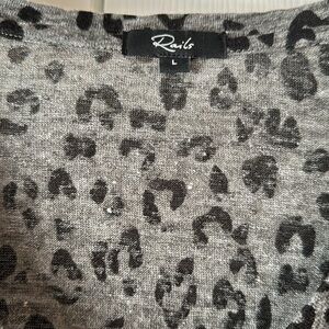 Rails Sami 100% linen charcoal leopard print long-sleeve v-neck top sz large