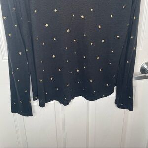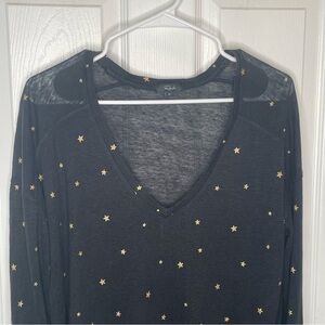 Rails Sami Drop Shoulder V-Neck Linen Blend Tee In Black Gold Foil Star M