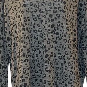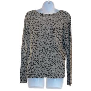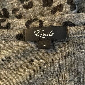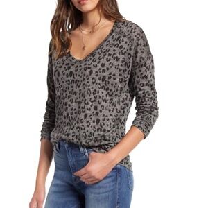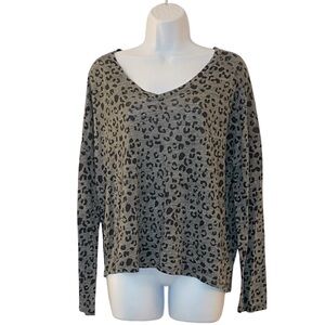 Rails Sami Long Sleeve V Neck Animal Print Top in Charcoal Linen Blend in Size L.