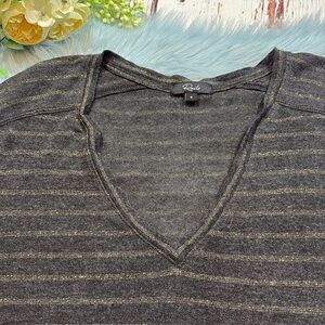 Rails Sami V Neck Long Sleeve Charcoal Bronze Stripe Tee. This is in good used condition