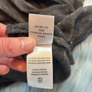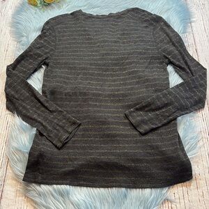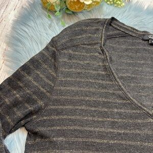 Rails Sami V Neck Long Sleeve Charcoal Bronze Stripe Tee sz S