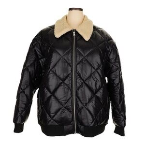 Rails Shay Bomber Puffer Jacket 2X Black Quilted Faux Fur Collar NWT $348 XXL